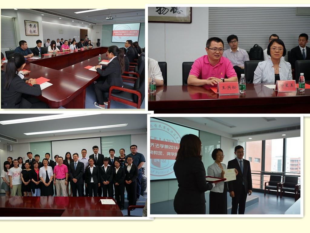 2014-2015学年院设奖教金和奖学金颁奖仪式在逸夫楼4040会议室举行,北京岳成律师事务所高级合伙人岳屾山,学院分党委副书记兼副院长王洪松,民诉研究所党支部书记、岳成奖教金获奖者邱星美,奖学金获奖学生以及学生工作办公室辅导员、学生代表参加了颁奖仪式,仪式由学生工作办公室刘贺元主持。