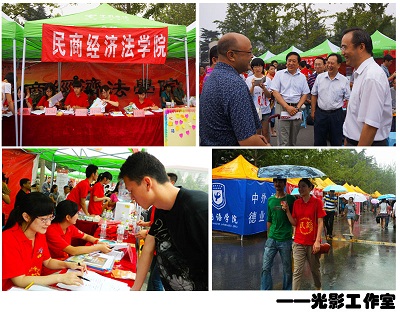 在众多的工作人员当中,2012级新生志愿者是其中一道靓丽而极具特色的风景线。他们虽然也是刚进校门,但俨然已成为其中一员,为家长端茶递水、提供信息咨询,为同级新生领路等等,其熟悉程度一点都不亚于师兄师姐们。一位新生志愿者对记者说道:“作为一名新生党员,服务大众是分内之职,并且我也从中获得了快乐。”他们热情洋溢,他们清新洒脱,他们认真负责,他们吃苦耐劳,起到了新生模范的作用。
