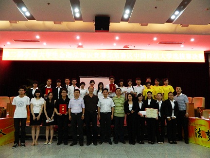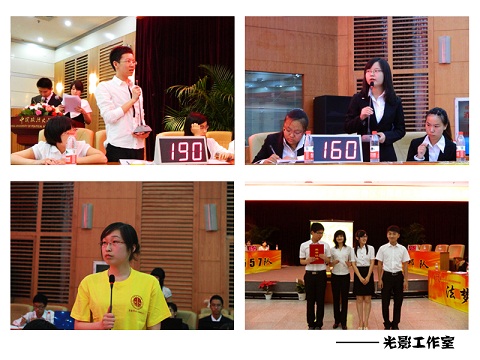 金融法研究中心主任刘少军和李爱君、贺绍奇两位老师。六支闯进决赛的代表队和近200名啦啦队成员参与了比赛。