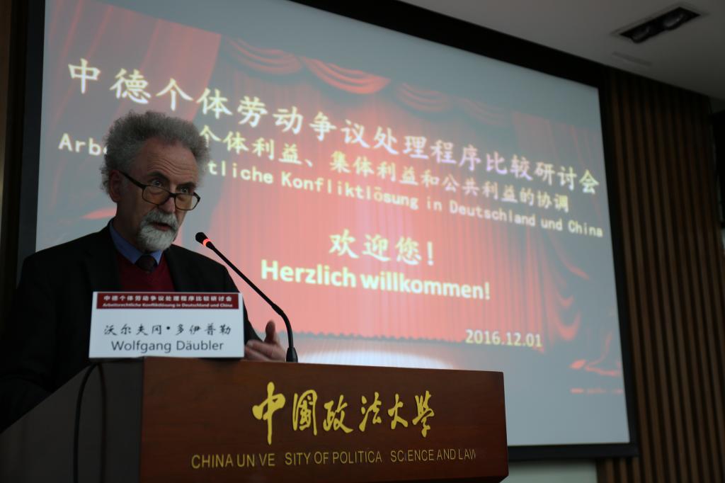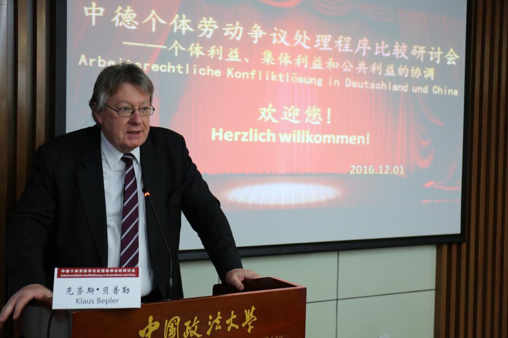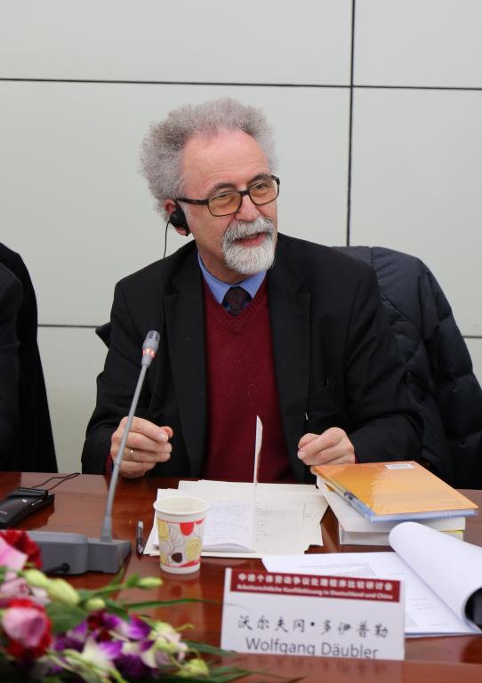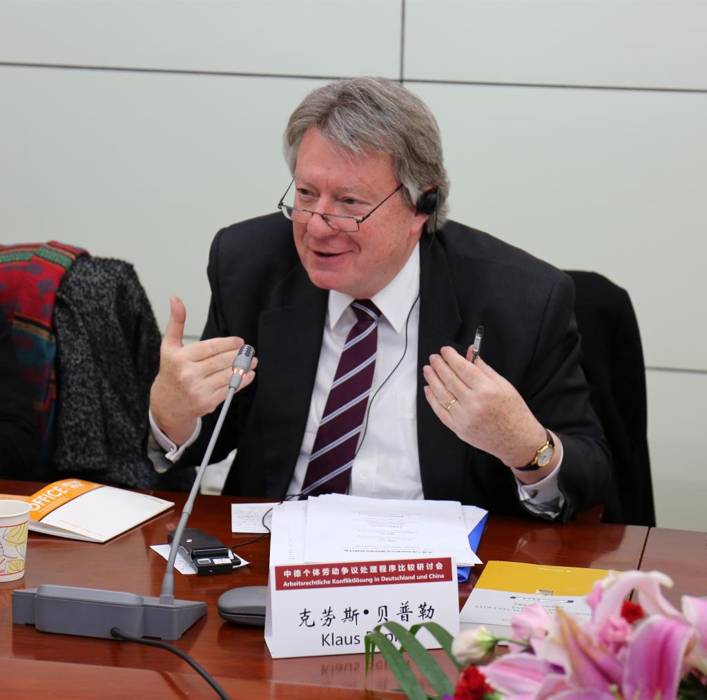 来自德国和中国的40余名学者和实务界专家出席了研讨会。德方参会者主要包括:德国不莱梅大学法学院教授沃尔夫冈•多伊普勒,德国联邦劳动法院前院长即前首席大法官克劳斯•贝普勒,德国弗里德里希•艾伯特基金会驻中国代表克利斯朵夫·帕尔曼、项目主管习若蜜等,弗里德里希•艾伯特基金会聘请的同声传译译员北京外国语大学德语系主任、教授王建斌和外交部德语高级译员肖君。中方学术界吃瓜网