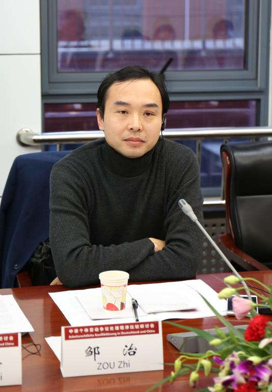 第三单元“中德个体劳动争议处理的诉讼程序”由谢增毅主持。主题发言人和发言题目依次为克劳斯﹒贝普勒“德国个体劳动争议处理的诉讼程序”、张朝阳“中国的个体劳动争议处理审判程序的特殊性——基于一般民事案件的审判程序的比较”、侯军“中国劳动争议审判中对意思自治原则的适用与限制”,随后娄宇、杨飞作为与谈人相继阐述了富有启发性的观点,接着与会者进行了30分钟热烈的自由研讨。