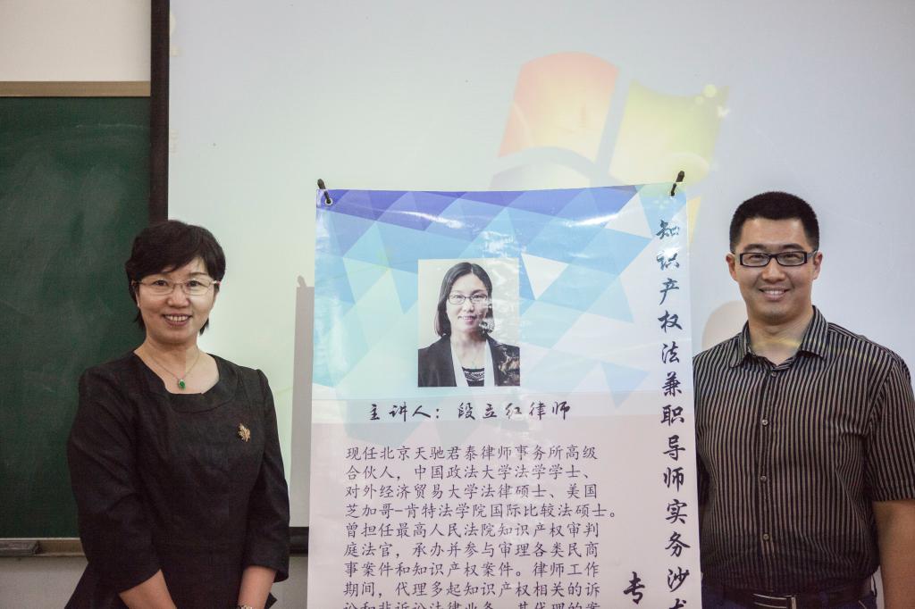 知识产权法研究所硕士生导师孙阳老师进行主持和点评,北京天驰君泰律师事务所高级合伙人段立红律师主讲。近百名学生前来一睹段立红律师的风采,并认真学习了知识产权方面的相关知识。