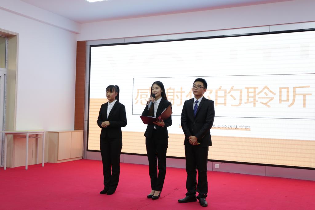 的三名学生屈乐美、杨轶男、吴仁辉分别就遗憾和选择、大学生活和寻找自我三个方面与亭自庄学校的初三学生分享了自己的经历。