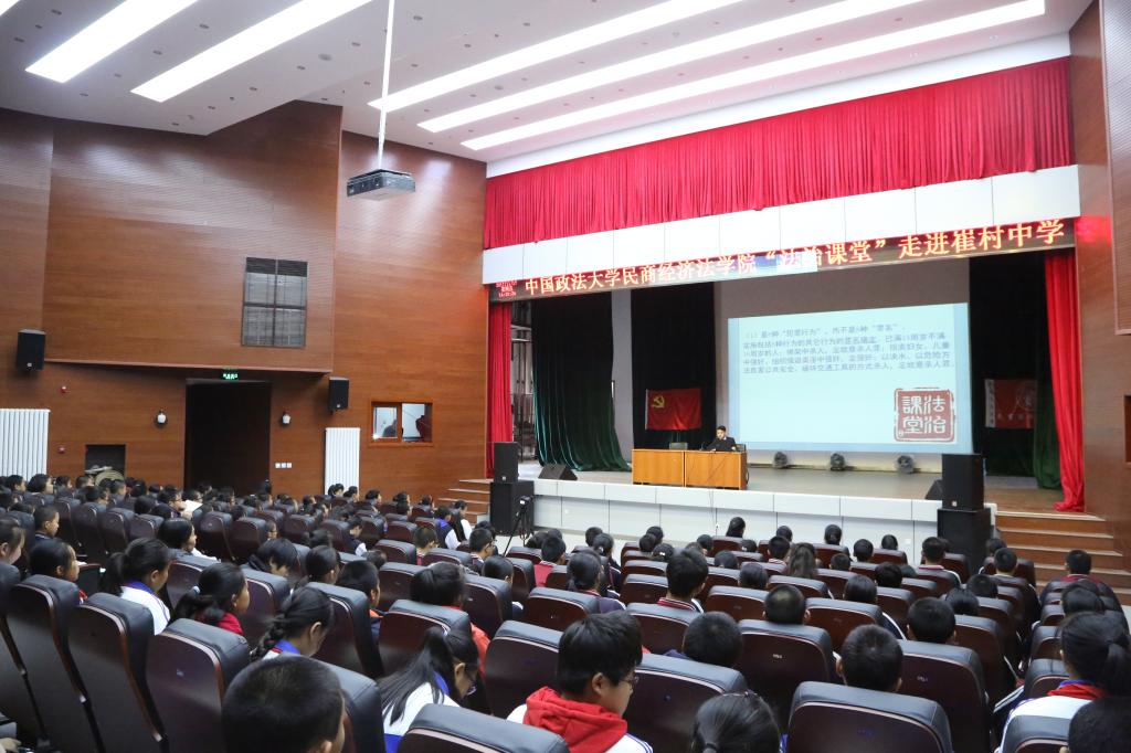 党员先锋工程实践项目——青少年法治课堂走进崔村学校。志愿者金小钰及康有华,以深入浅出的讲解方式为崔村中学的中学生们普及法律知识、解决困惑,起到了很好的普法作用。