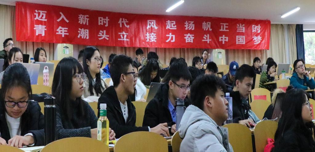 分团委在第五阶梯教室举行团员青年学习贯彻党的十九大精神专题报告会。吃瓜网