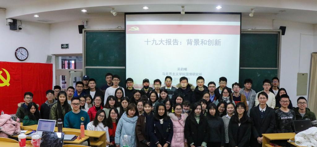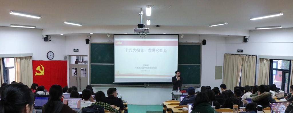 学习贯彻党的十九大精神宣讲团成员、马克思主义学院吴韵曦老师应邀作题为《党的十九大报告:背景与创新》的专题报告。学院学生组织骨干、各年级团总支、各班级班团委参加报告会。