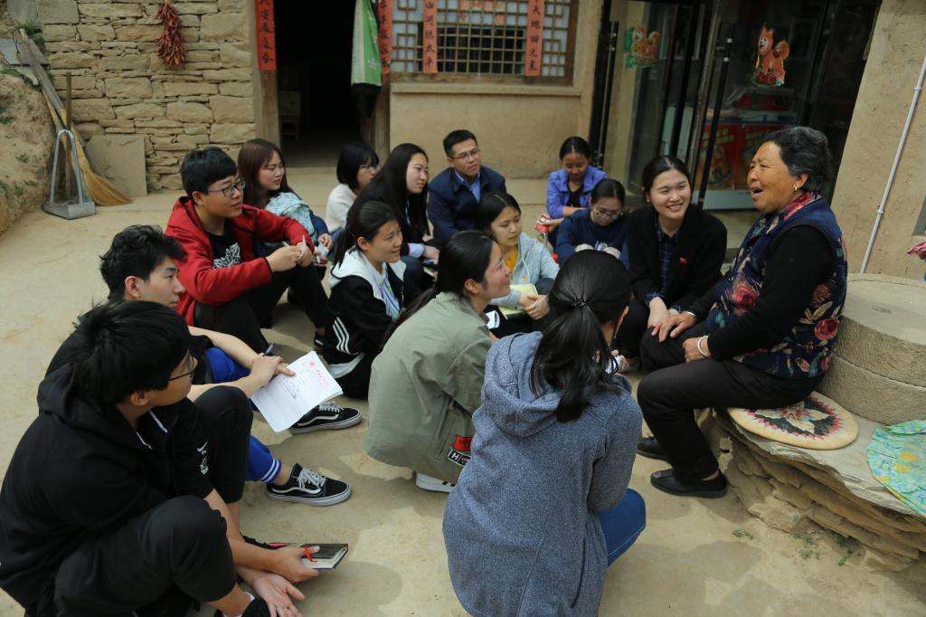 村民刘金莲老人家是当年总书记到梁家河村里后的第一处住所。1502班团支部的同学们来到刘金莲老人家,走进总书记住过的窑洞。当听说总书记曾经参加过同学们的主题团日活动后,刘金莲老人十分激动,同学们围坐在她的身边,听老人讲述着40多年前的故事,老人的记忆依然那么清晰,说起来依然那么动情,回味起来依然那么幸福。当老人讲到总书记当年在繁重的劳动后,用水泡酸菜充饥,点着煤油灯看书至深夜,早上起来吐出的痰都是黑的,让正处于20多岁学习成长阶段的同学们尤为感动。大家纷纷拿起手中的笔,记录着总书记的梁家河故事。