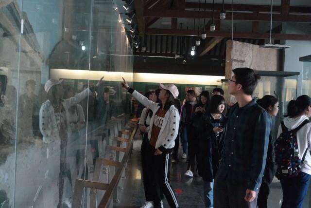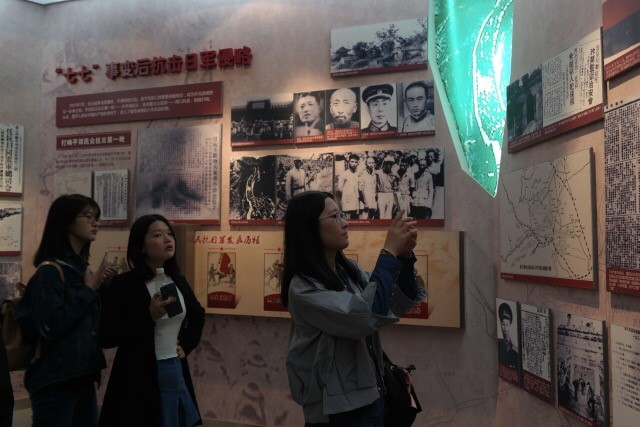 在焦庄户地道战遗址展览馆,面对一张张过去的黑白照片、一件件先烈们曾使用过的武器和穿过的粗布衣裳,同学们感受着在物质条件极度缺乏的时代,革命先辈们不怕苦、不畏险、甘愿为祖国奉献生命的伟大情怀。使处在和平年代的同学们尤为震撼和感动。