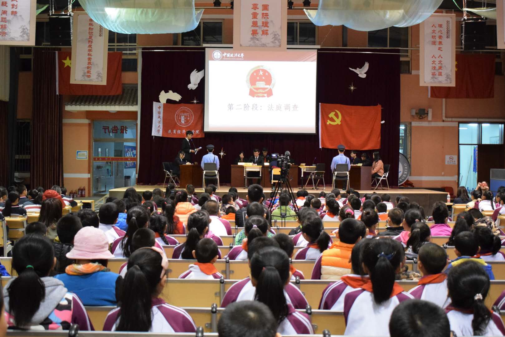 党员先锋工程实践项目——青少年法治课堂走进长岭中学,志愿者以“远离校园欺凌,创建和谐校园”为主题,通过模拟法庭表演的形式,向长陵学校的中小学生们传播法律知识。