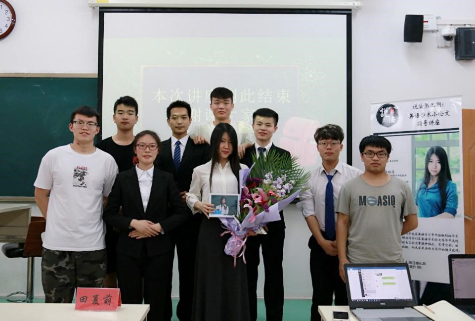 在活动的最后,工作人员为老师献上鲜花以表感谢,并合影留念。本次讲座不仅体现了同学们对于论文写作的热情,也使同学们对如何写好论文有了更深刻的认识。